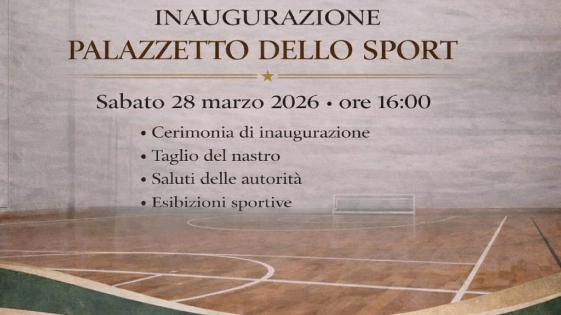 Sabato 28 marzo alle ore 16.00 la cerimonia ufficiale con autorità, società sportive e il CT della Nazionale Femminile di Basket Andrea Capobianco