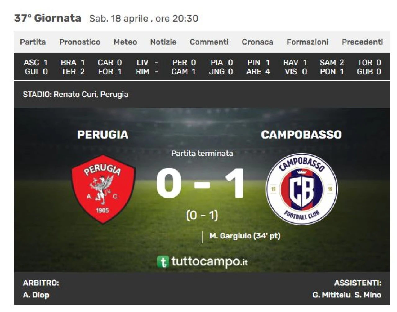 Il Campobasso FC, grazie alla preziosa vittoria firmata dalla rete di Gargiulo e complici la sconfitta del Pineto e il pareggio della Juv...