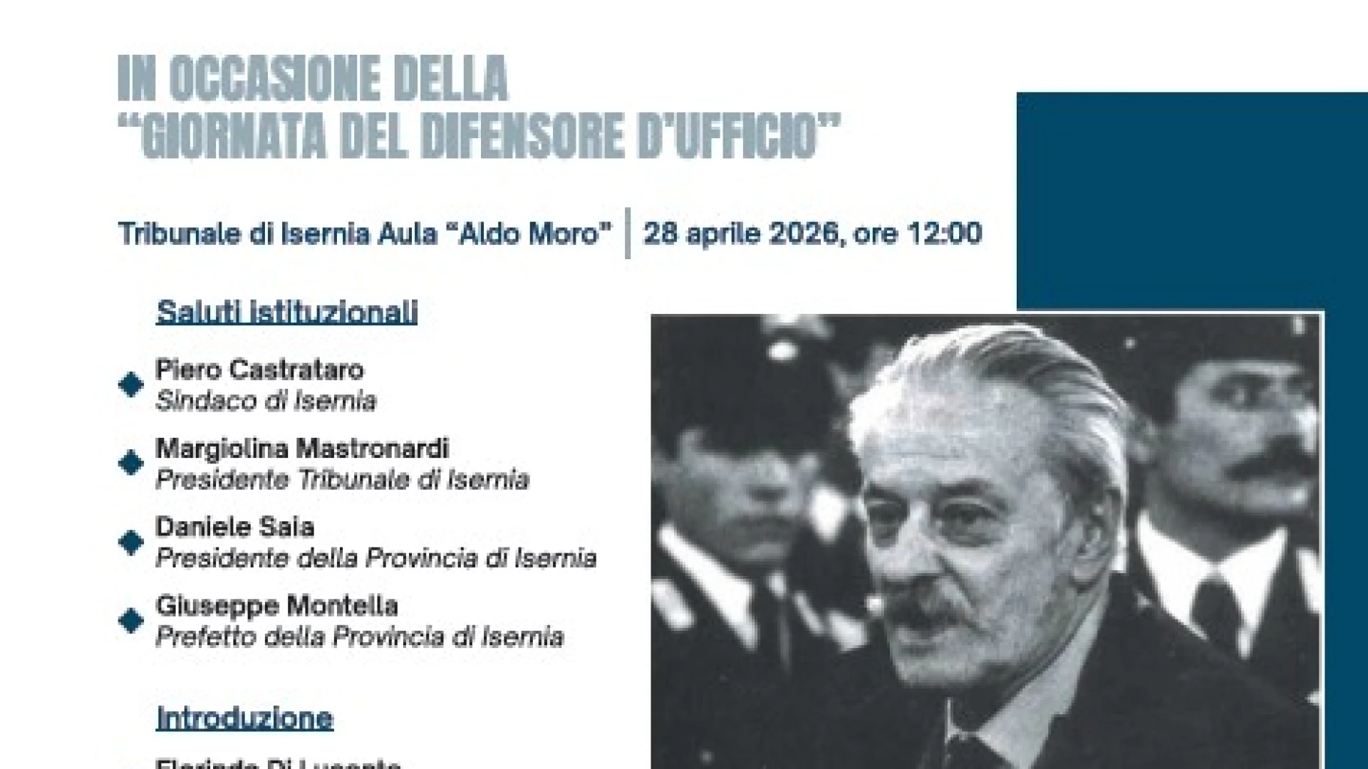 ISERNIA. Il 28 aprile ricade la “V” giornata del Difensore d’ufficio, istituita nel 2022 dall’Associazione Italiana Difensori d’Ufficio (ADU Italia), facendo coincidere tale data con la barbara uccisione a Torino dell’Avv. Fulvio Croce da parte delle Brigate Rosse, avvenuta il 28 aprile 1977.