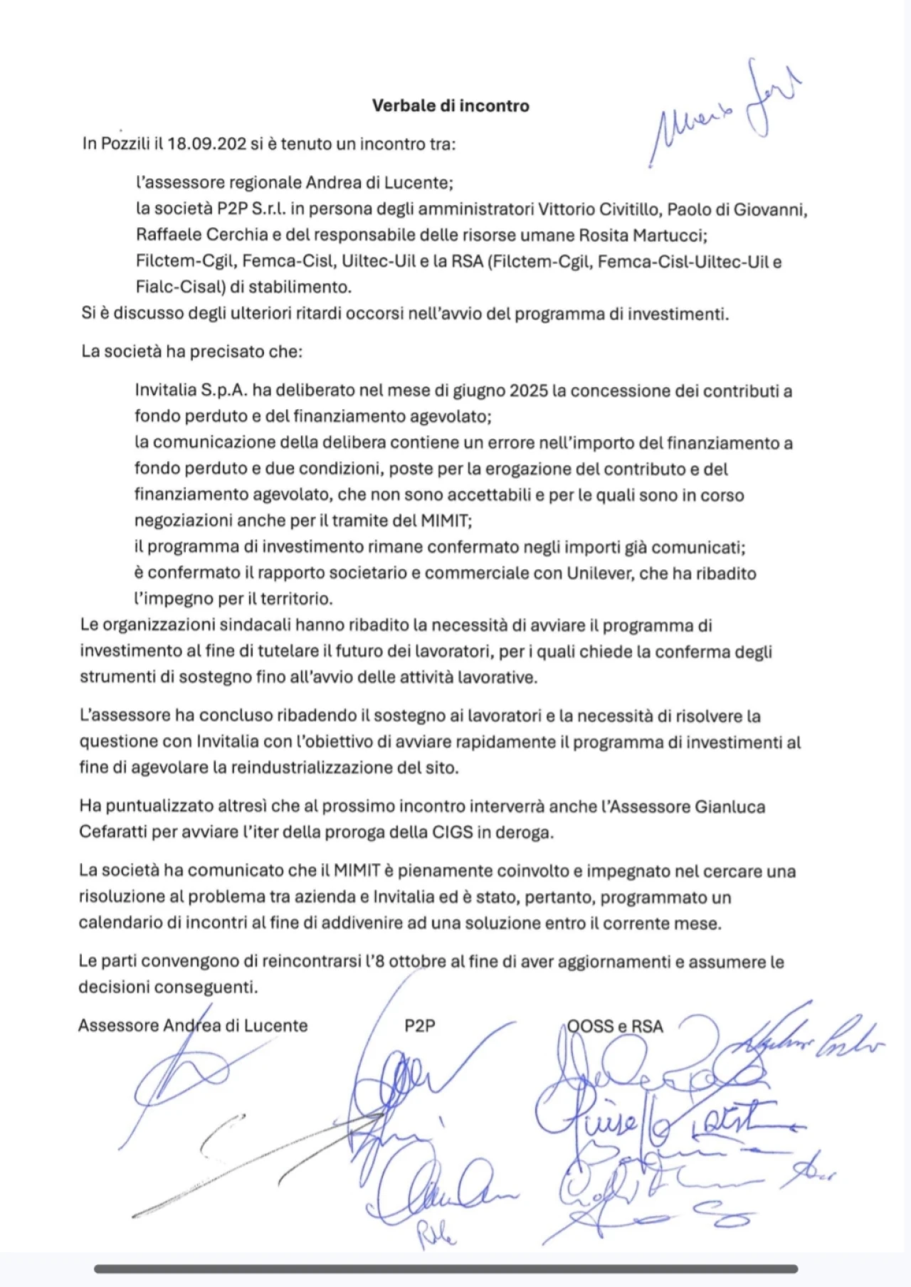 “Essendo un incontro tecnico, la Regione e i sindacati non sono stati convocati. Adesso, però, abbiamo necessità capire quali saranno le tempistiche per la definizione della riconversione dell’azienda di Pozzilli e che cosa succederà nei prossimi mesi. Per questo motivo ho fatto partire immediatamente una richiesta di tavolo allargato nella quale chiarire una volta per tutte quale sarà il futuro dell’azienda e, di conseguenza, dei lavoratori oltre che dell’indotto. Allo stesso tempo, ho chiesto un incontro con i sindacati per fare il punto anche a livello regionale, in virtù del fatto che il 31 dicembre scadrà la cassa integrazione e, come Regione, vogliamo capire le tempistiche per il termine della procedura di valutazione”.