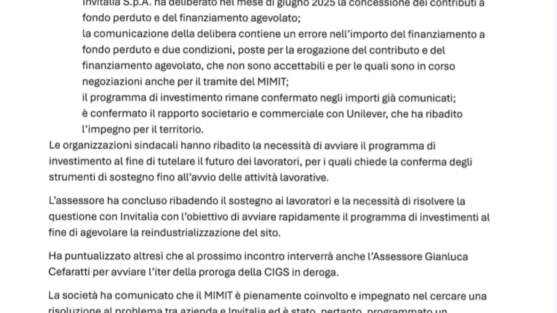 A seguito delle notizie discordanti che arrivano da Roma sul caso Unilever, abbiamo chiesto un tavolo urgente presso il Mimit per capire a che punto è la riconversione dell’azienda”. A dirlo è l’assessore regionale alle Attività Produttive, Andrea Di Lucente, a seguito dell’esito dell’incontro che si è avuto presso il ministero il 24 ottobre scorso.