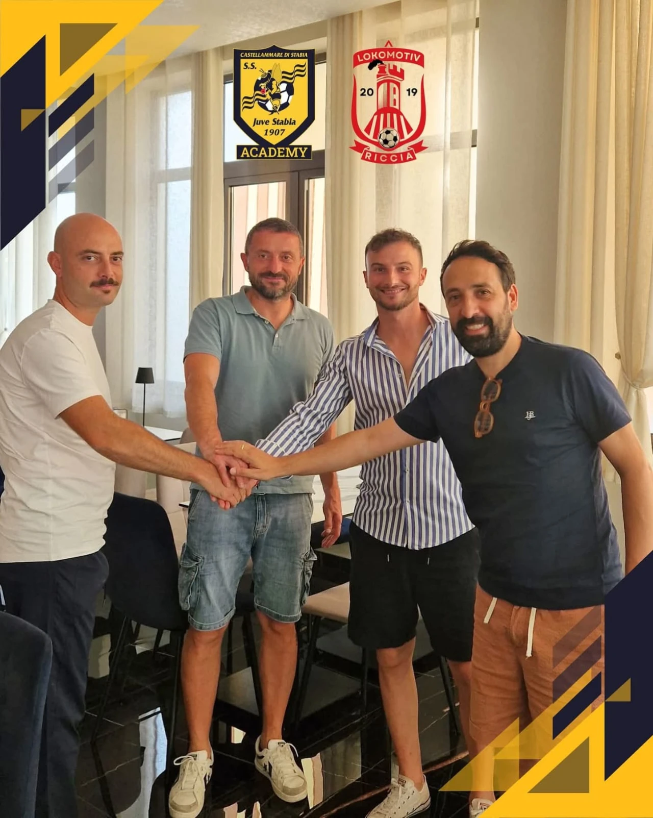 CASTELLAMMARE DI STABIA. Nella giornata di ieri è stato siglato un'importante rapporto di collaborazione tra la Juve Stabia e il Lokomotiv Riccia, squadra di Promozione Molisana. Questo accordo di affiliazione tra queste società unisce la voglia di crescere insieme, condividere valori sportivi e costruire un futuro ricco di opportunità per tutti i giovani con l'obiettivo di formare atleti ma soprattutto persone. Grande soddisfazione per la società molisana che viene accolta nella grande famiglia stabiese.
