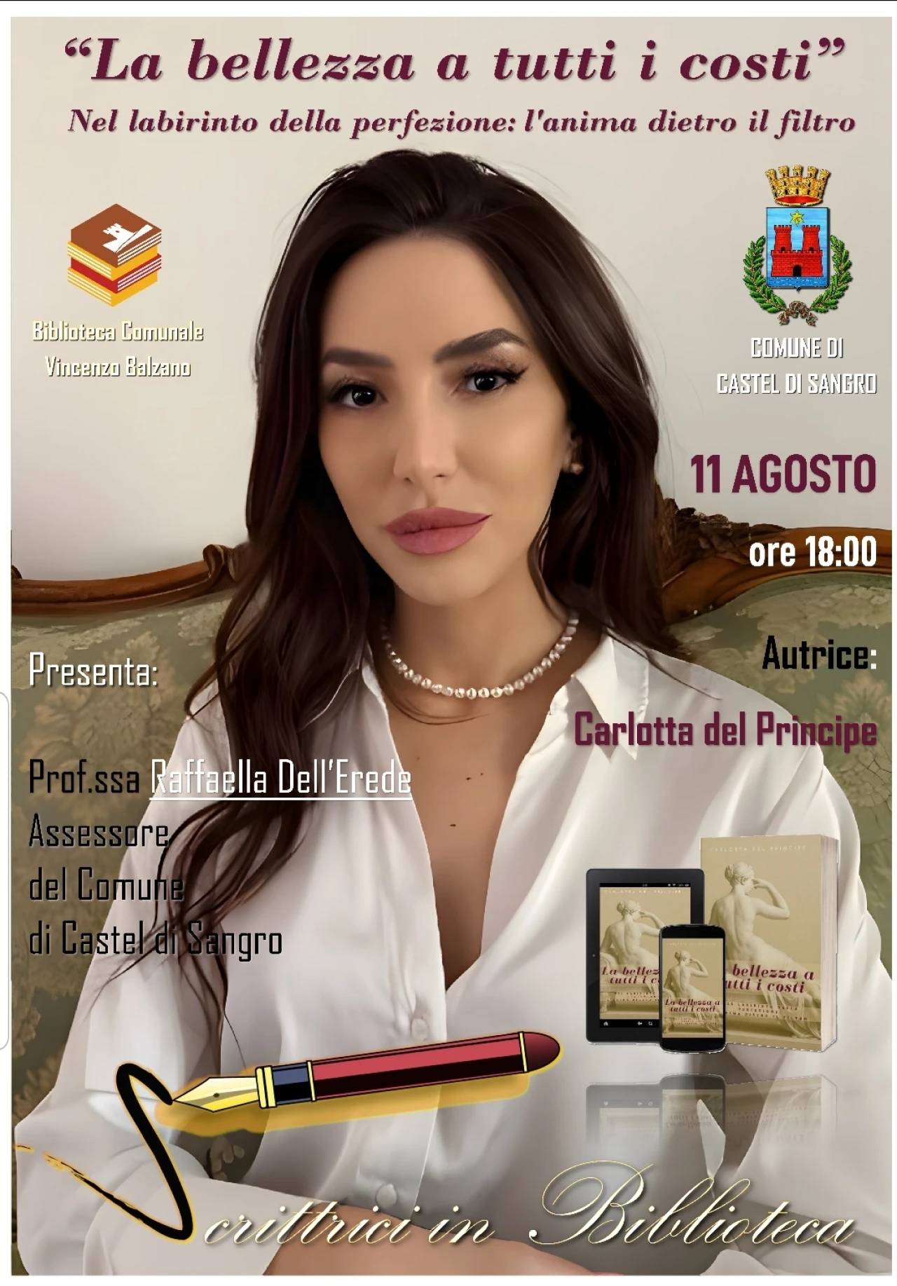 CASTEL DI SANGRO. “La bellezza a tutti i costi è un viaggio crudo e appassionato nel cuore di un’epoca in cui la bellezza non è più libertà ma imposizione. Attraverso un’analisi spietata che attraversa storia, arte, psicologia e tecnologia, questo libro svela come la bellezza sia diventata una trappola dorata: un dovere sociale, una performance quotidiana, un campo di battaglia digitale dominato dagli algoritmi” (Carlotta Del Principe).