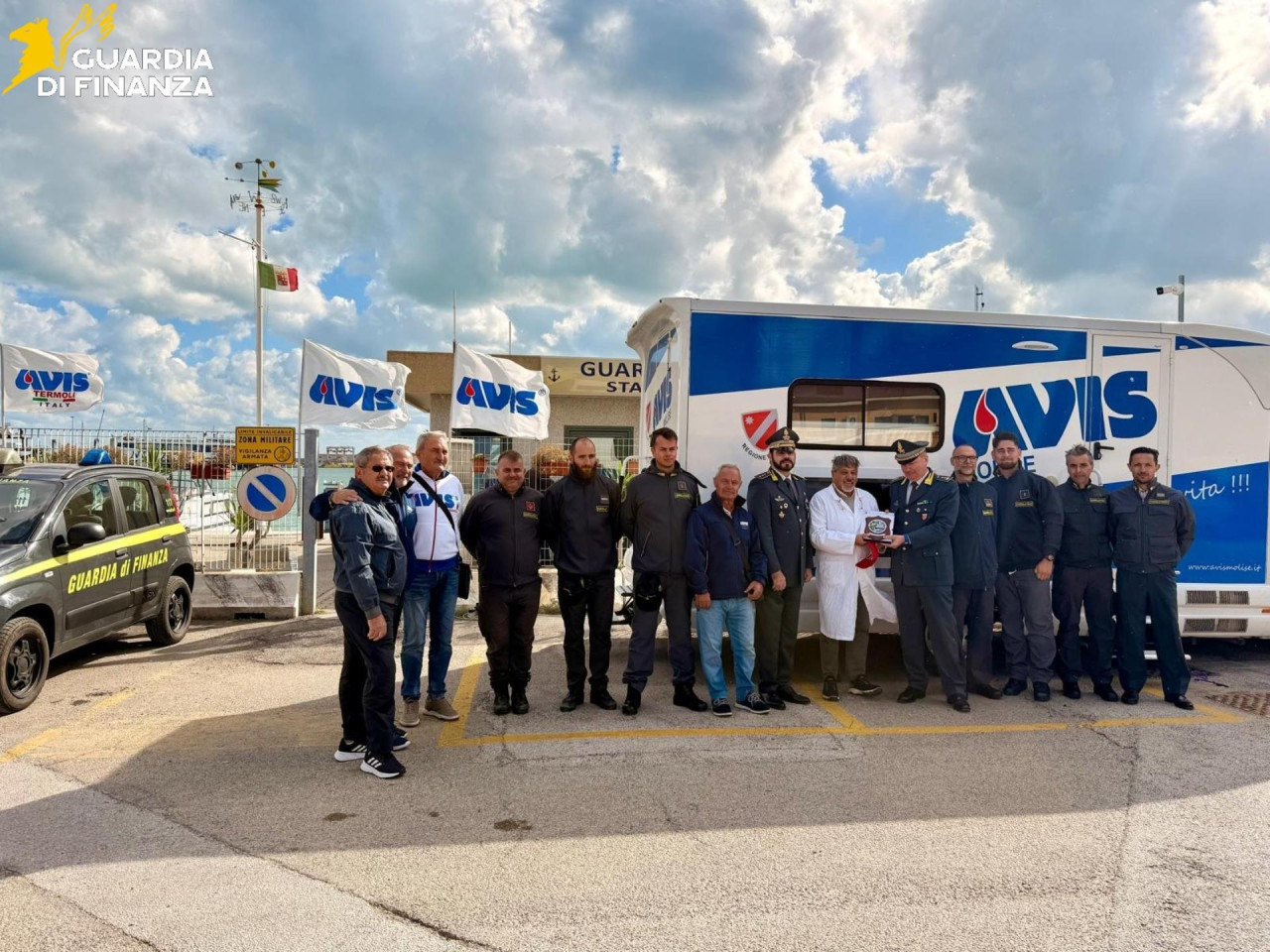TERMOLI. La Guardia di finanza di Termoli e la locale Sezione AVIS hanno organizzato una giornata dedicata ai finanzieri, per la donazione di sangue. Nella mattinata odierna l'autoemoteca dell'Avis ha fatto tappa presso gli ormeggi della Stazione Navale consentendo alle donne ed agli uomini della Guardia di finanza, in servizio ed in congedo, di poter donare sangue e plasma.Un gesto tangibile di sentimenti di generosità ed altruismo che da sempre animano i militari del Corpo.Un sentito ringraziamento all'Avis di Termoli che ha accolto con favore e grande disponibilità l'iniziativa promossa dal Reparto Operativo Aeronavale. L'evento odierno rafforza ulteriormente il legame tra le Fiamme Gialle e la cittadinanza e conferma la vocazione sociale e solidale della Guardia di finanza, che si pone al servizio della collettività non solo attraverso le proprie funzioni istituzionali, ma anche mettendo a disposizione personale e mezzi per il bene comune.