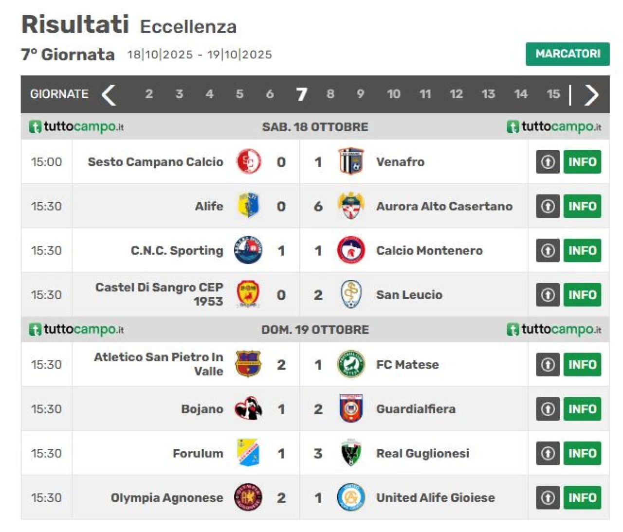 Lega Pro girone B, Serie D girone F, Eccellenza e Promozione Molise: risultati aggiornati e classifiche complete dopo l'ultimo turno di campionato.