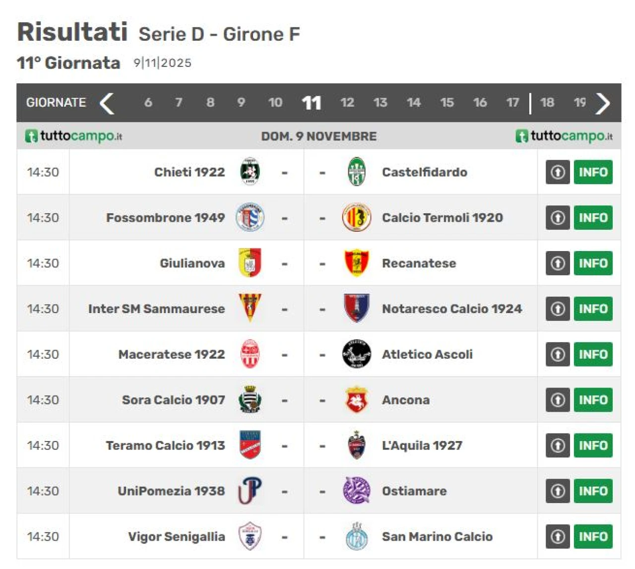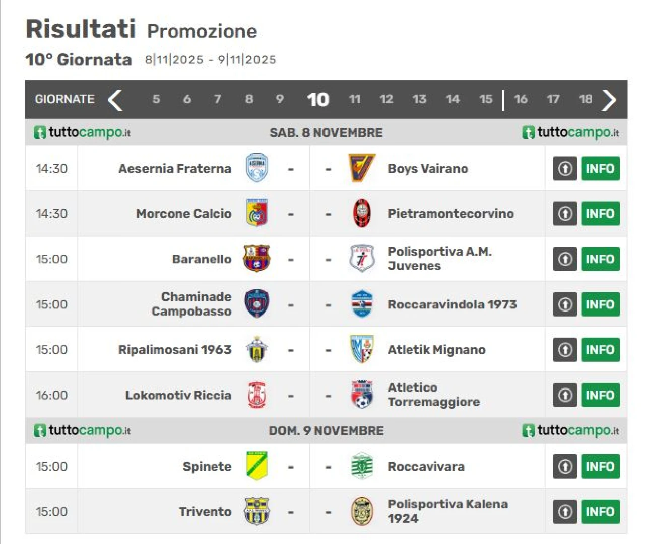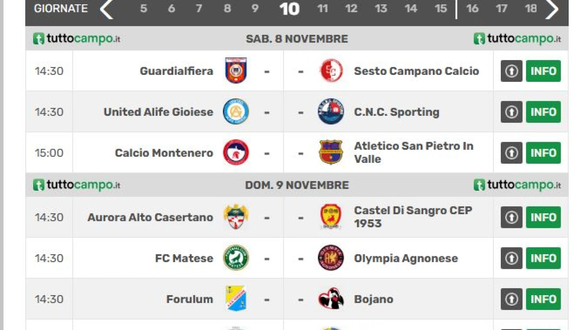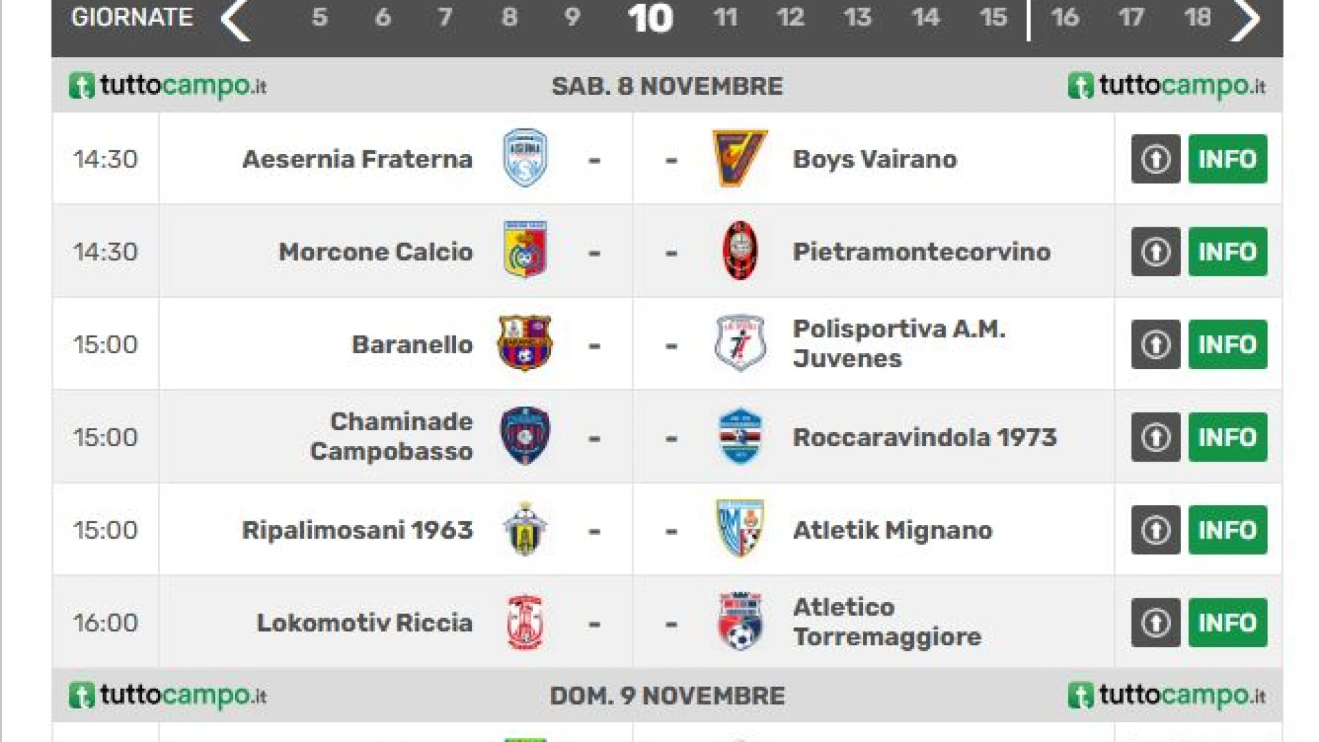 Serie D girone F, Eccellenza e Promozione Molise. Le gare in programma nel fine settimana. CONSULTA LE SCHERMATE