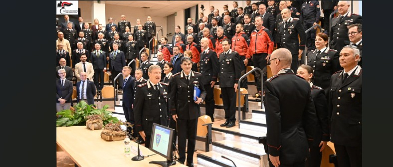 Nei locali dell’Aula Magna “Luigi Giugno”, accompagnato dal Colonnello Giuseppe Lopez, Comandante della Regione Carabinieri Forestale “Abruzzo e Molise”, e dal Tenente Colonnello Irene Sebastiani, Capo Ufficio Comando, il Generale Parrulli, alla presenza del Cappellano Militare, Don Claudio Recchiuti, ha salutato gli Ufficiali comandanti e addetti dei reparti abruzzesi e molisani delle Specialità Forestale (Gruppi L’Aquila, Chieti, Pescara, Teramo, Campobasso, Isernia - Reparti Parco Nazionale Maiella, Abruzzo Lazio e Molise, Gran Sasso e Monti della Laga - Reparti Biodiversità L’Aquila, Castel di Sangro, Pescara, Isernia), Ambientale (Nuclei Operativo Ecologico Campobasso e Pescara) e Agroalimentare (Nucleo Tutela Agroalimentare Avezzano), nonché una rappresentanza di comandanti e addetti dei Nuclei Carabinieri Forestali e Parco, i rappresentanti delle Associazioni Professionali a Carattere Sindacale e una delegazione dell’Associazione Nazionale Carabinieri e dell’Associazione Nazionale Forestale. Nel corso dell’incontro, il Generale Parrulli, dopo aver portato il ringraziamento ricevuto dal Sig. Prefetto per il lavoro svolto a tutela dell’ambiente, della natura, delle biodiversità e delle eccellenze alimentari, ha esortato i militari, quali rappresentanti sul territorio, ad esplorare attentamente e a conoscere nel dettaglio le aree che essi presidiano, in modo da poter intervenire con efficacia alle richieste della comunità e dei cittadini. Li ha, inoltre, invitati, ad essere saggi nelle scelte per onorare la divisa che essi indossano ogni giorno.