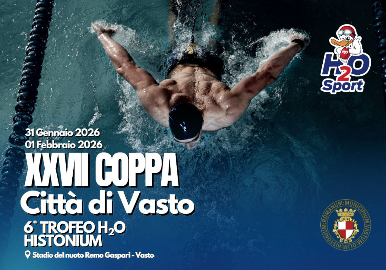 VASTO-CH. Torna il grande appuntamento con la XXVII Coppa Città del Vasto, Meeting Nazionale di Nuoto organizzato come di consueto dalla società H2O Sport del Presidente Massimo Tucci. Nel prossimo weekend, sabato 31 gennaio e domenica 1 febbraio riflettori accesi sullo stadio del nuoto Remo Gaspari dove si confronteranno i migliori atleti provenienti da tutta la penisola pronti a regalare spettacolo ed emozioni alla ricerca del risultato più prestigioso. Una kermesse, quella in terra abruzzese che è ormai diventata un punto di riferimento importante per appassionati e addetti ai lavori.