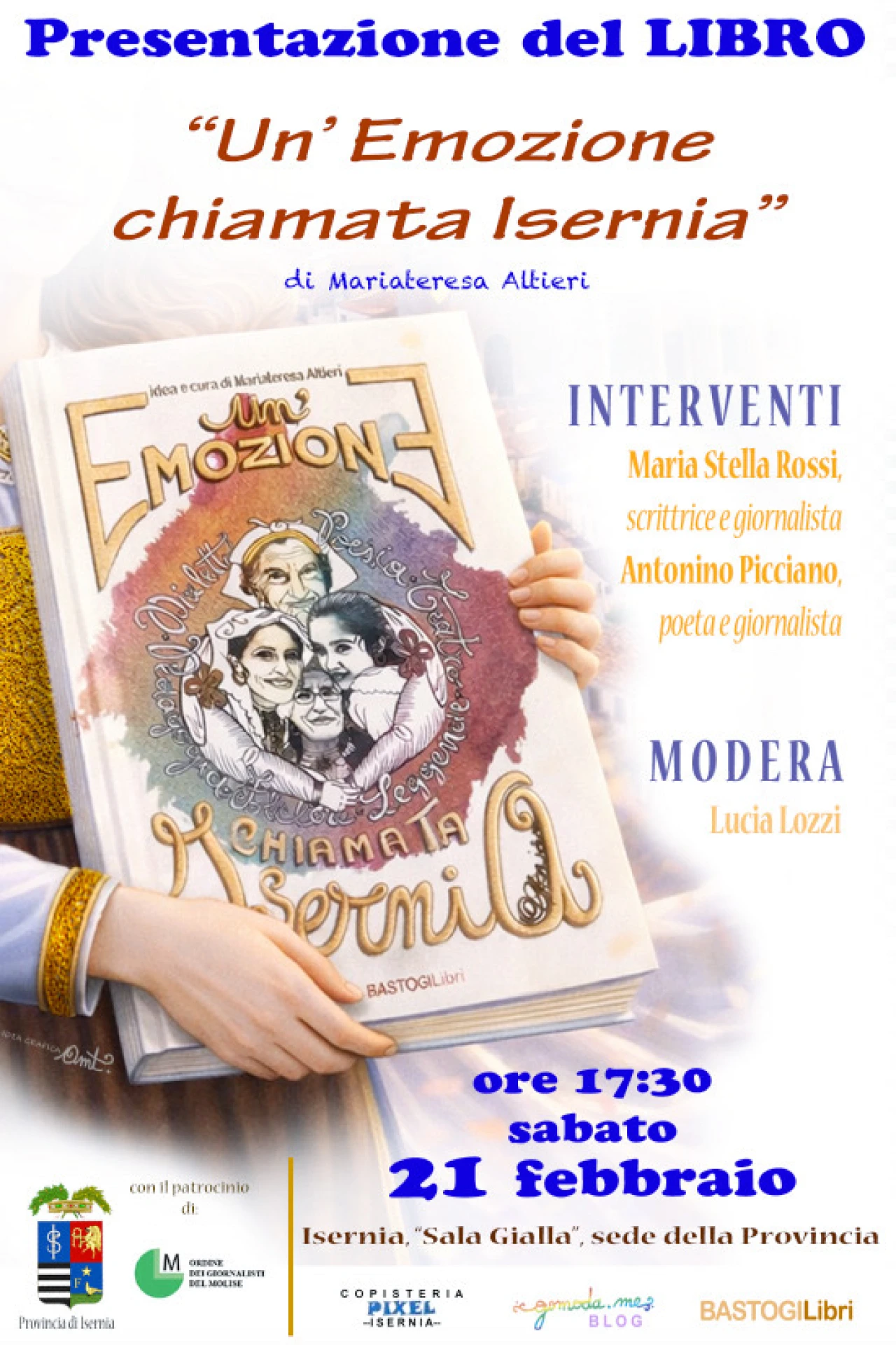 ISERNIA – Sabato 21 febbraio, ore 17.30, presso la Sala Gialla della Provincia di Isernia, si terrà la presentazione del libro “Un’emozione chiamata Isernia” (Bastogi Libri editore), ideato e curato da Mariateresa Altieri, un’opera antologica che restituisce voce, memoria e sentimento alla città pentra.Il volume si configura come un vero e proprio viaggio emozionale e identitario, in cui storie, volti, parole e immagini si intrecciano per raccontare Isernia non solo come luogo geografico, ma come spazio dell’anima, fatto di appartenenza, ricordi e legami profondi. Un libro che nasce dall’amore per il territorio e dalla volontà di conservarne e condividerne il patrimonio umano e culturale.