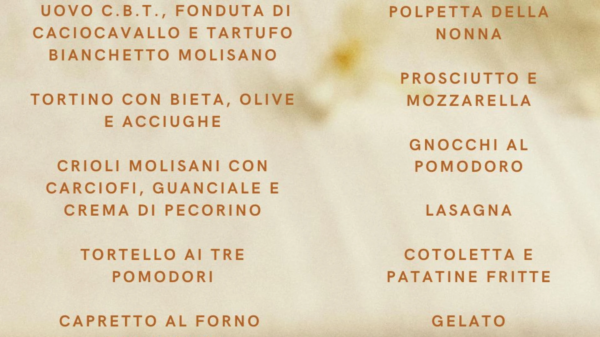 Un percorso di gusto che parte dalla frittata di Pasqua, passa per i crioli molisani con carciofi, guanciale e crema di pecorino, fino al capretto al forno con patate, per concludersi con un dolce omaggio alla tradizione: il semifreddo “pastiera”.
