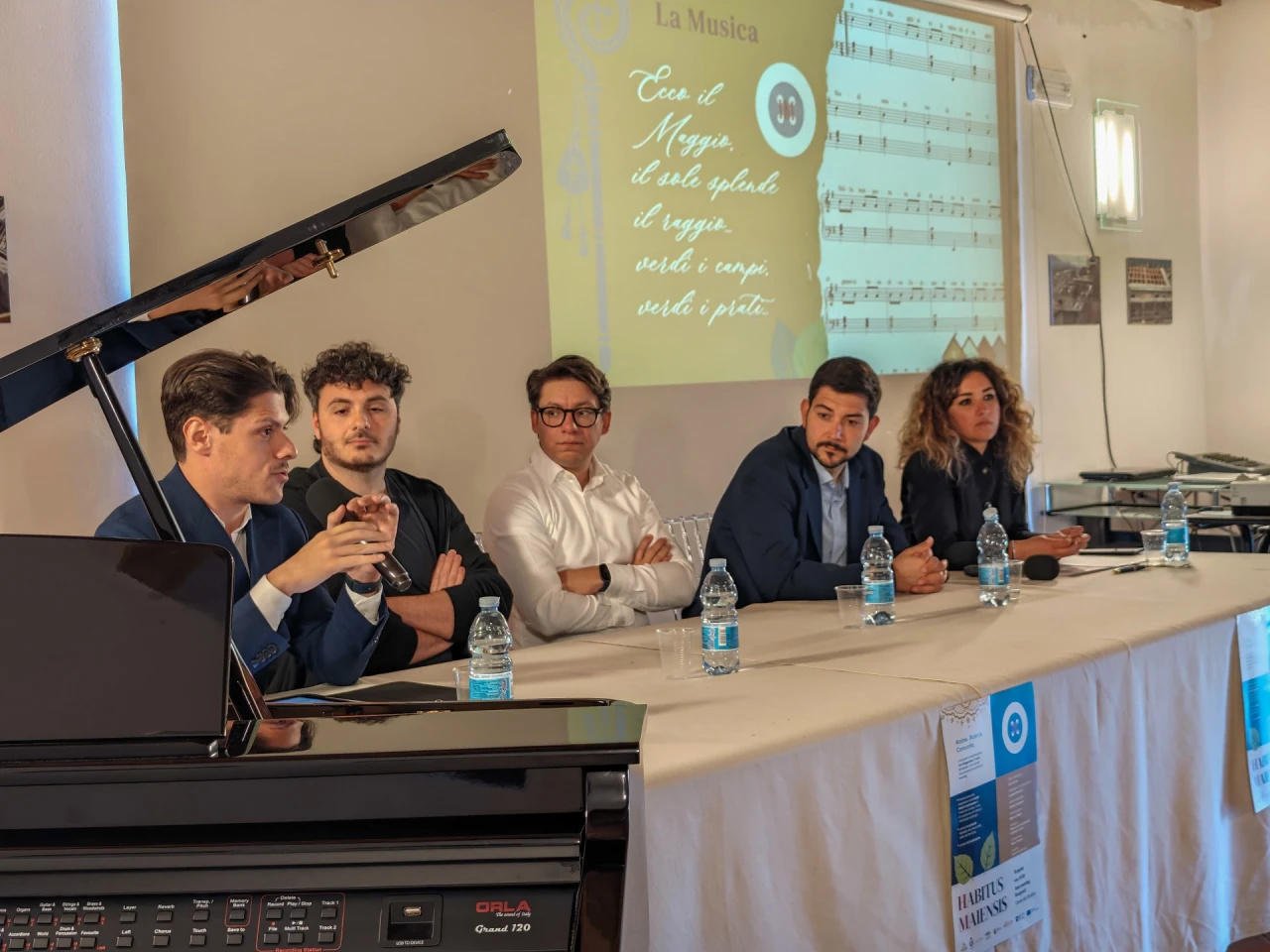 «Habitus Maiensis è nato dal bisogno di recuperare un patrimonio stratificato di saperi e pratiche comunitarie che nessun singolo oggetto o gesto potrebbe racchiudere da solo — ha spiegato Luciana Petrocelli —. La Maggiolata diventa così il fulcro simbolico in cui una comunità si riconosce e si racconta. Habitus, in questo senso, non è solo un abito: è un modo di abitare i valori e le pratiche che definiscono la comunità. Un progetto che ha intrecciato ricerca storica, lavoro sartoriale e linguaggi artistici in un unico percorso interdisciplinare». Un podcast di 8 minuti, mostrato durante l’evento, con la voce narrante dell’attore Pasquale Di Giannantonio del Teatro Italo Argentino e i disegni realizzati dall’illustratore Marco Tarquini, con le animazioni e il montaggio di Rafael Carpio. E un’audiostoria che narra in modo più approfondito le vicende storiche alla base della ricostruzione degli abiti. Il podcast e l'audiostoria trasformano la ricerca in narrazione emotiva. Le illustrazioni rielaborano la tradizione con un tratto contemporaneo, mentre l'identità visiva del progetto è stata curata da Marino Di Nisio. Il pianista Davide Marchesani ha reinterpretato e suonato al pianoforte il canto della Maggiolata: «forma musicale settecentesca che affonda le radici nella villanella napoletana – ha spiegato -, una melodia ciclica, sospesa, che nella sua struttura stessa evoca il ritorno della primavera».
